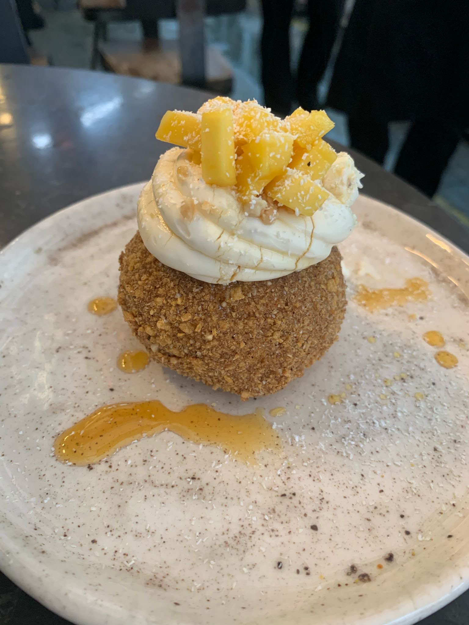 Kızarmış Dondurma, Pasta kreması ve Mango ile With Fried Ice Cream, Pastry Cream and Mango