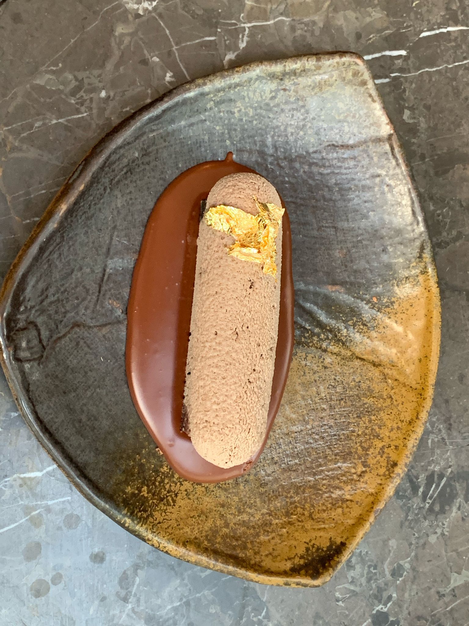Belçika Çikolatalı Bitter Mus, Çikolatalı Pandispanya ve Çikolata Sos ile. / Belgium bitter Chocolate Mousse with Chocolate Sponge Cake and Chocolate ganage.